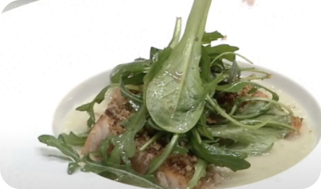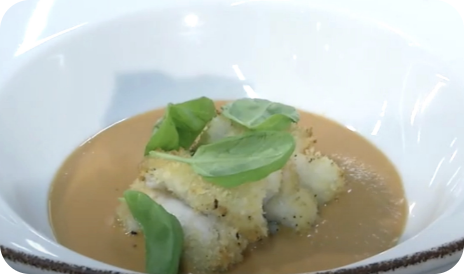 Merluzzo in crosta di pane con coli di pomodoro