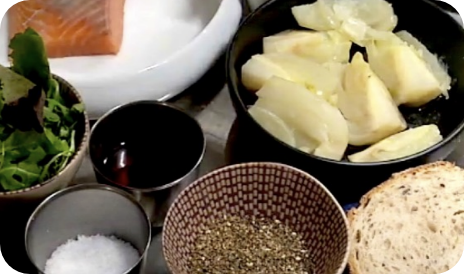 Salmone alla piastra con zuppa di finocchi e pane integrale