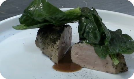 Fegato di vitella al vapore spinaci e alghe